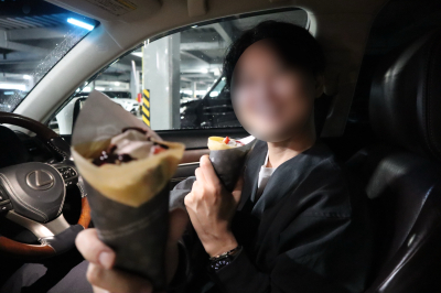 色気のない感じで撮影場所でクレープとか食べてました(*´艸`)