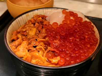 いくら丼のお店ですが今の時期はいくらとウニのダブル丼があり🤤