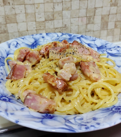 昨日は生クリームを使ってカルボナーラに挑戦してみました。