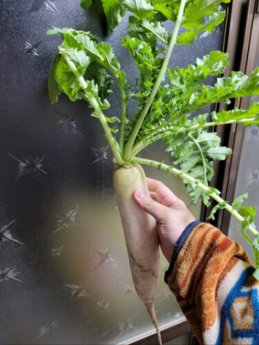 葉っぱ付きの大根をもらいました〜!