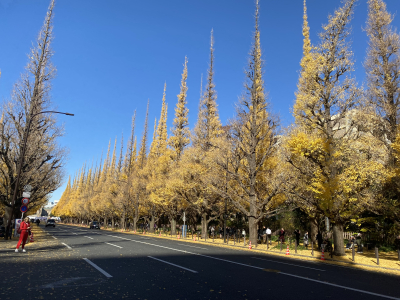 歩道のアスファルトが見えないくらいの季節の移ろい