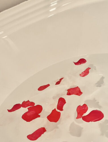 施術後にはバラの花びらを浮かべた