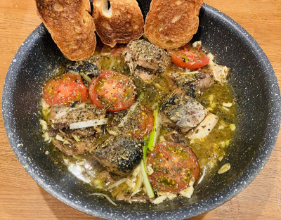 夕食にサバ缶を使ってアヒージョを作ってみたよ!