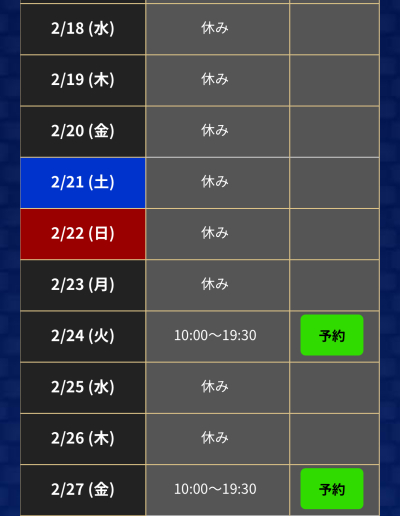 2月後半の出勤日更新しました。お時間ある方はぜひ(^^) PS.先日、施術の帰りの電車で電マが勝手に動き出して冷や汗もんでした。背負ってたカバンに力が入って、勝手にスイッチがオンになっ…