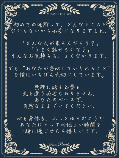 2025-06-09お客様からは、 「みちる君とハグすると、すごく落ち着く……」 といった嬉しいお言葉をいただくことがあります。 みちるにとってハグの時間はとても大切なひとときです。 程よく引き締まった筋…