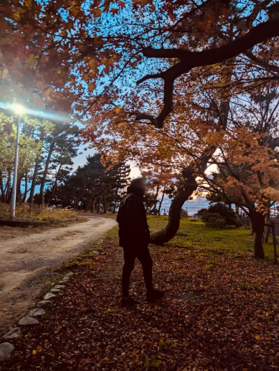 風が冷たいけど 空気が綺麗で 紅葉と海の グラデーションが綺麗♣️ ここ 一緒に歩きませんか? 心が洗われます🖤 KURO