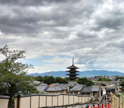 少し雲が多い 東山からの風景 八坂の塔の向こうには 京都タワーも見える 絶景スポット