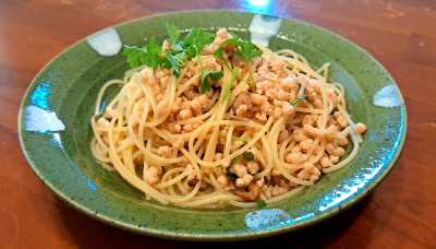 オイル系とりむねミンチパスタ