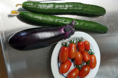 お庭の畑の夏野菜の収穫ができるようになって来ました🎵 採れたては美味しいです😉