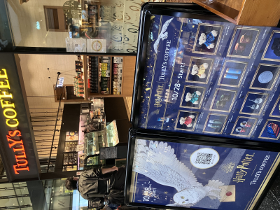 皆さま、こんにちは☀️ 今日は晴れていたので、朝洗濯物を干してきた楓です🍁 今日はタリーズコーヒーの前を通って気になった看板があったのでパシャリ📷 なんと、ハリーポッターとのコラボが…