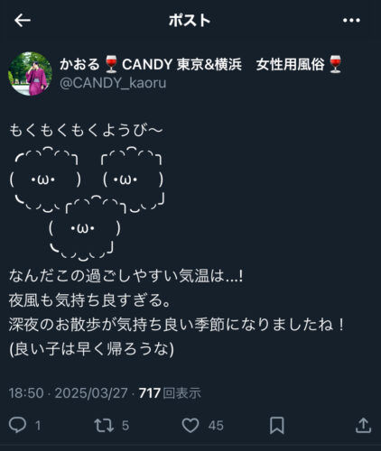 かおるです٩(๑❛ᴗ❛๑)۶いよいよ春到来!!お花見シーズンだよー!!!!4月の出勤予定をあげます!平日でお休みとなっている日でも、前日までにご連絡いただければ出勤できる日が大半なのでシフトを気にせず…