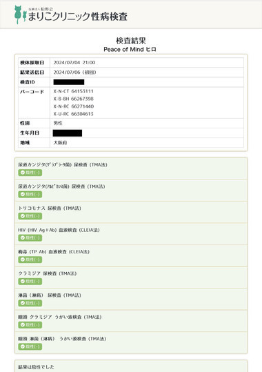 性病検査異常なしでした✨