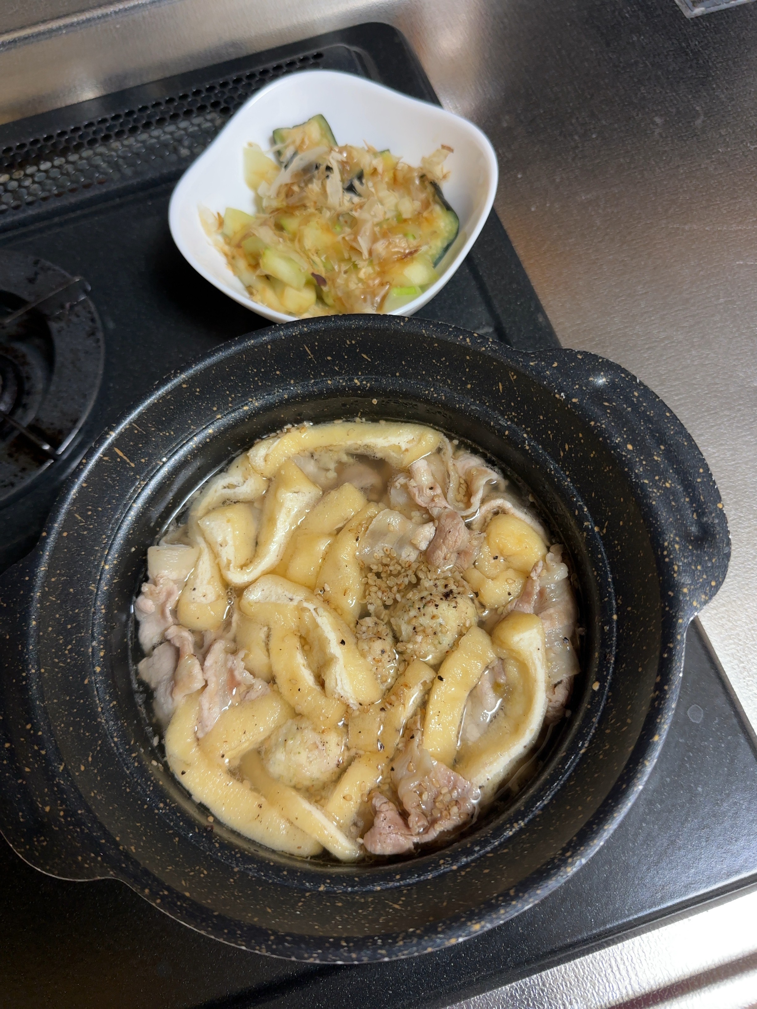 暑くて汗かいたから💦塩🧂鍋ᵃⁿᵈナスキュウリ🍆🥒の浅漬けですわ😇皆様も暑さバテにご用心✨