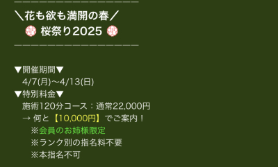 イベント対象セラピストのみですが通常120分22000円が10000円と大変ご利用頂き安くなっております😆✨