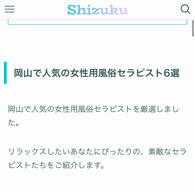 「岡山で人気の女性用風俗セラピスト6選」に選んでいただきました!✨