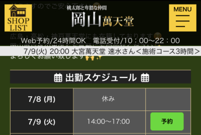 明日7/9は岡山店舗のみ出勤します🙌✨