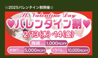 2月はバレンタイン割とご新規様限定イベントとダブルで盛りだくさんでお得な月になってます🤗💗
