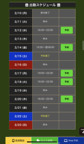 土曜日は予約頂けました…