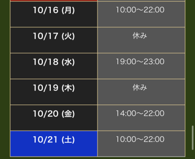 11月1〜15日までのスケジュールになります🙌✨ 11/1 14時〜22時 11/5 14時〜22時 11/8 14時〜22時 11/9 14時〜22時 11/13 14時〜22時 …