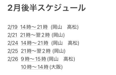 2月後半スケジュール?