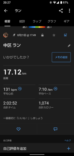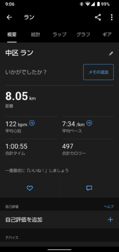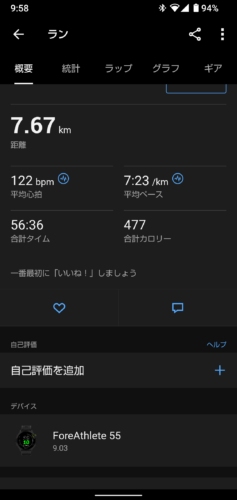 本日のランニング