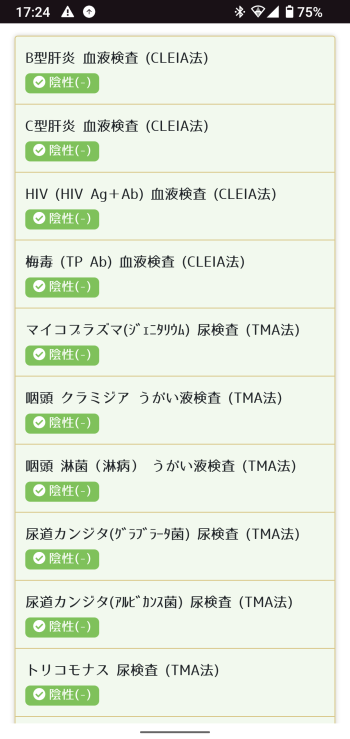 性病検査の結果