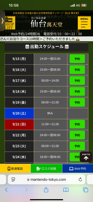 24時間営業 (電話受付/10:00~22:00 24時間営業 Web予約ALL TIME OK)