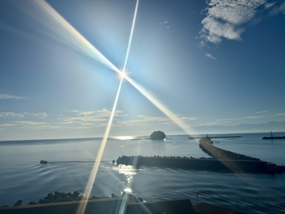 快晴の青空とまぶしい太陽、穏やかな海の三重奏を見ながら気持ちよく走りました