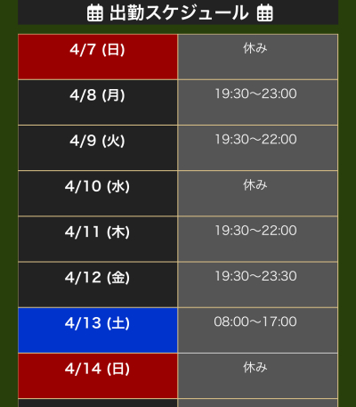 イベント期間中は昼間の出勤も可能な場合もありますのでXのDMにてお問い合わせいただければと思います☺️