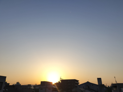 雲一つない快晴、夜明けを迎えている高松より💛