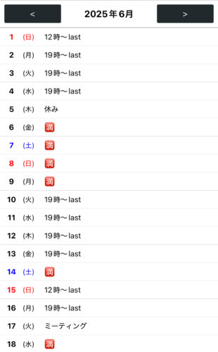 六月スケジュール更新