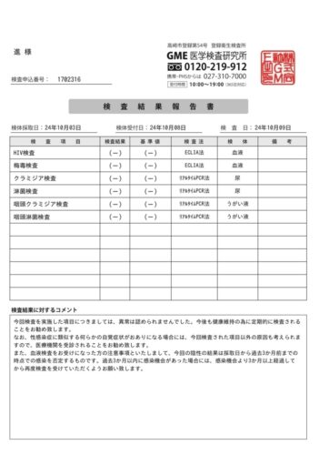 10月の性病検査結果です