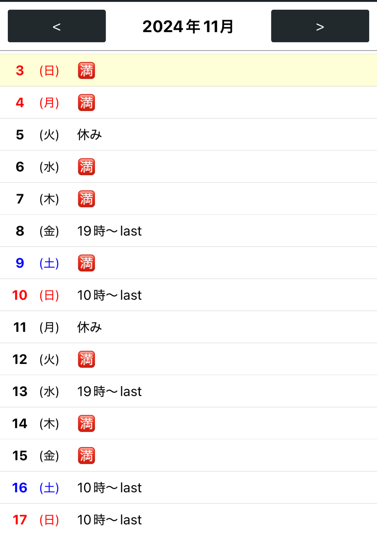 11月前半のスケジュール更新しますお問い合わせお待ちしております
